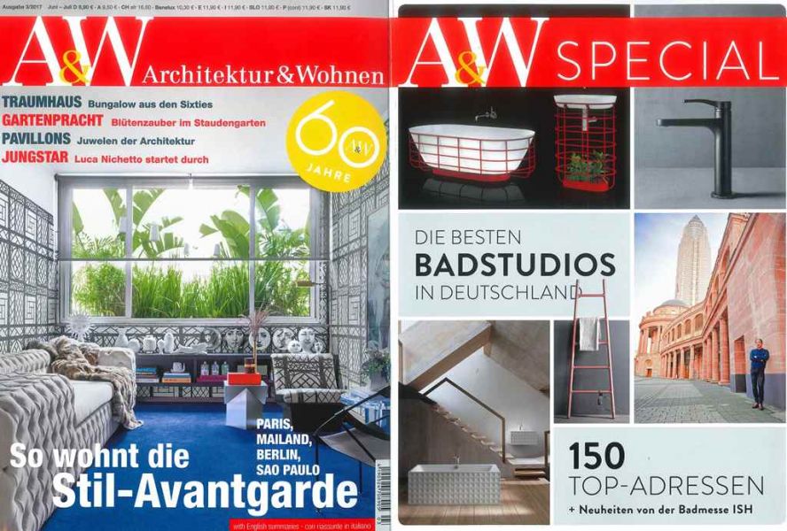 Das Magazin ARCHITEKTUR UND WOHNEN wählt uns erneut in den Kreis der besten Badstudios in Deutschland.